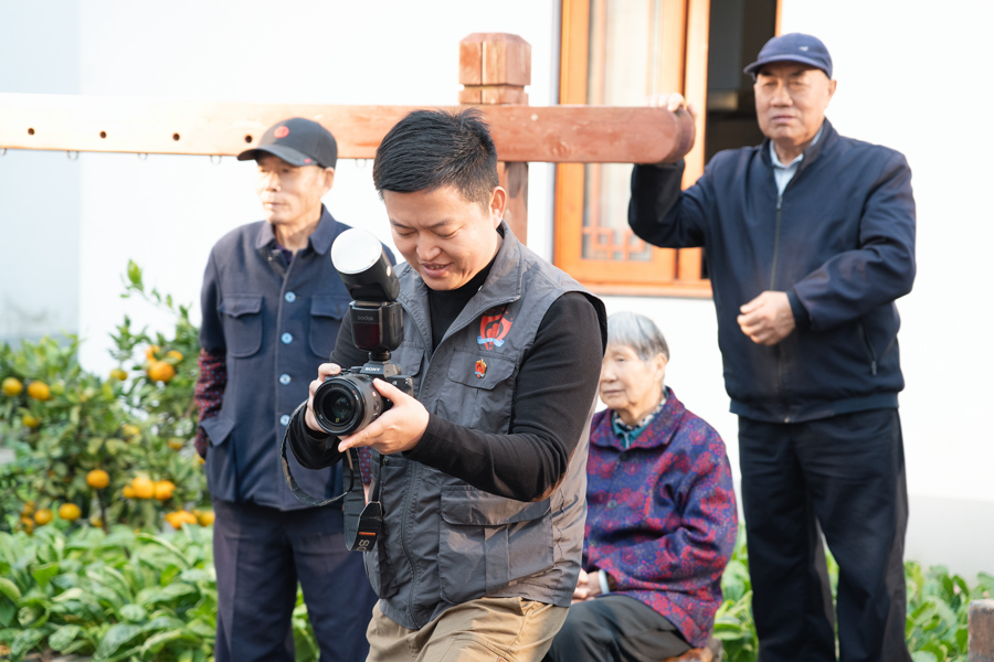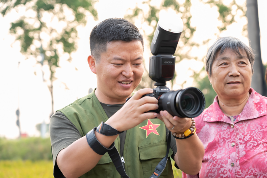 后来,我身边聚集了一群爱摄影又有爱心的伙伴。从3人一直到10人,2016年10月组建了“拾光”青年摄影志愿服务队,寓意是“拾起老人美丽的笑容,定格老人幸福的时光”。起初,我们拍完照后,会统一送到照相馆冲印,再送给老人。2016年12月的一天,我们带着照片回到村里时,发现一位老人没等到照片就离世了。这让我们意识到,有时老人可能等不起。于是,我买了便携打印机,现场为老人打印照片,尽力“跑赢时光”。